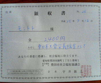 × [PR]上記の広告は3ヶ月以上新規記事投稿のないブログに表示されています。新しい記事を書く事で広告が消えます。 2013年7月12日(金)のモントトと仲間たちのホッと手作りまつりの携帯ペイントでいただいた収益2400円を寄付してまいりました。 ご協力ありがとうございました!!(*^^*) PR