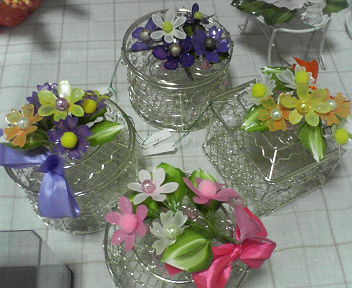 ガラスのような樹脂のお花の作品をたくさん作りました。 洗うこともでき、永遠に美しく咲いてくれます。 どうぞ見にいらしてください♪ ~~~~~~~~~~~~~~~~~~~~~~~~~~~~~~~~~~~ ★ モントトのクラフトフェスタin高橋コミセン ★ 2012年11月4日(日)10:00~15:00 ★ 高橋コミュニティセンター 大会議室 (愛知県豊田市東山町 2-1-1) 手作り作家さんたちの作品の展示販売、体験会、実演などなど♪ 素敵な賞品が当たるお楽しみ抽選会もあります。 整理券を配布しますのでスタッフの指示に沿って順番にご入場ください。 収益の一部は社会福祉のために寄付させていただきます。 *Atelier Chiffon de Chiffon(お洋服、布こもの) *アメリカンフラワー久美&さくらひめ(アメリカンフラワー) *O.NI.WA.Shop(布こもの他) *Open Sesame!(エコクラフト、布こもの) *kaco(手作りこもの) *皮雑貨工房 UGLY(皮雑貨) *cat's paw(布こもの他) *カトンテール(和のお洋服、布こもの) *かんとりぃはぁとM&ShizuShizu(木工、トールペイント) *Country Craft Ribon(エコクラフト、木工) *ジーコ・ダーノ(木工) *(株)シルクルス(光触媒フラワー) *Serendipity(クレイ) *Cherry Blossom(布こもの) *toko(布こもの) *Dot.ma’am(クラフト体験) *Tolepainting EACH(トールペイント) *TON’t(クラフト体験) *玻璃工房(グラスアート他) *hand made pochiko(布こもの) *ボン・シャンテ(パン) *ビーズアクセサリーjam(ビーズ) *ビーズジュエリーゆるり(ビーズ) *macoの似顔絵屋さん(似顔絵) *ママと花(フラワーアレンジ) *ままど~る(お洋服、布こもの) *ロザフィSrosy(ロザフィ) *モントト(ドライフラワー、トールペイント他、ボディ&フェイスペイント、携帯電話ペイント)