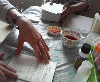 今日は、ShizuShizuちゃんのお宅で、かんとりぃはぁとMちゃん、のんちゃん、私(かっぱ)でフライヤーを切ったり、袋に詰めたりの作業をしました。